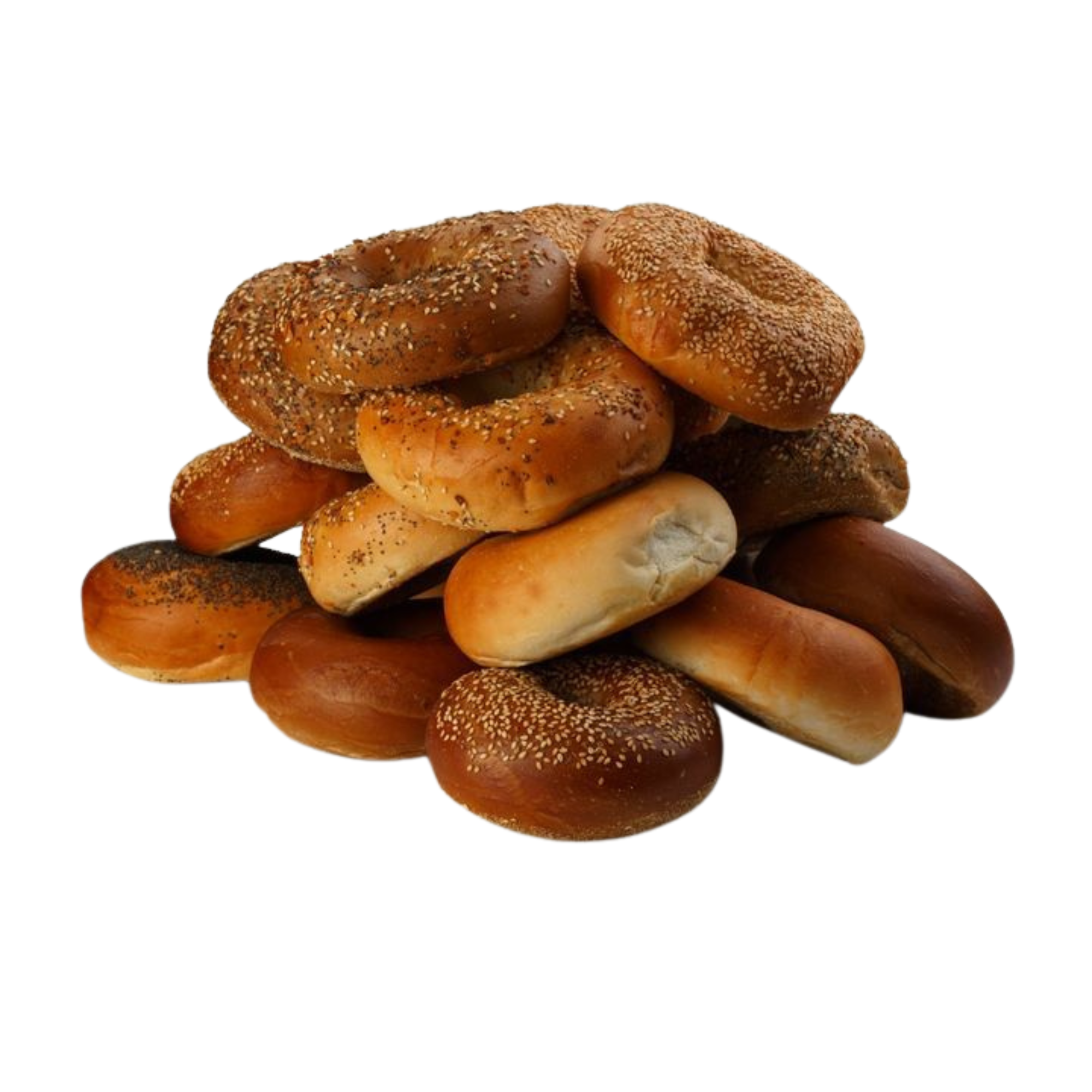Plain, Sesame, Everything, Poppy, Onion, WW Plain, WW Everything, Multigrain.